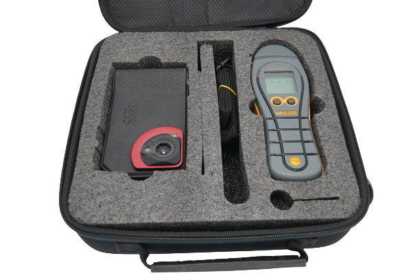 Protimeter and Seek Thermal have partnered to offer the Thermal Survey Kit. This kit is the ultimate in moisture testing instruments offering the Seek Shot Pro thermal camera and our ever popular Protimeter Surveymaster in one convenient package. The Seek Shot Pro is the most advanced thermal imaging camera for building professionals. Capture a photo and analyze immediately with on-device measurement tools. Add spot measurements and temperature boxes to create time-saving reports on the spot. Precisely diagnose problems with 4x times higher resolution than comparably priced cameras. Use SeekFusion to expose problems with adjustable blending of visible and thermal images. Additionally, Seek Shot lets you stream and share to a smartphone or tablet over WiFi. Available in the US/Canada